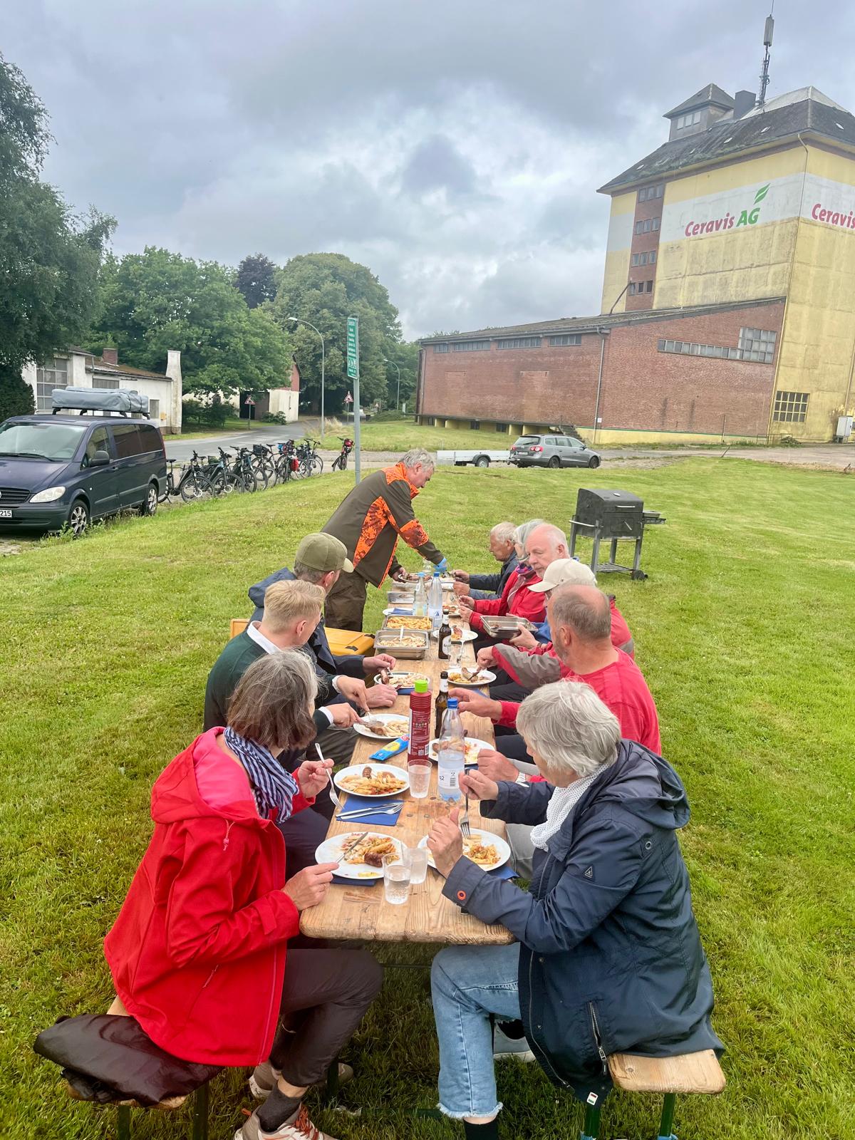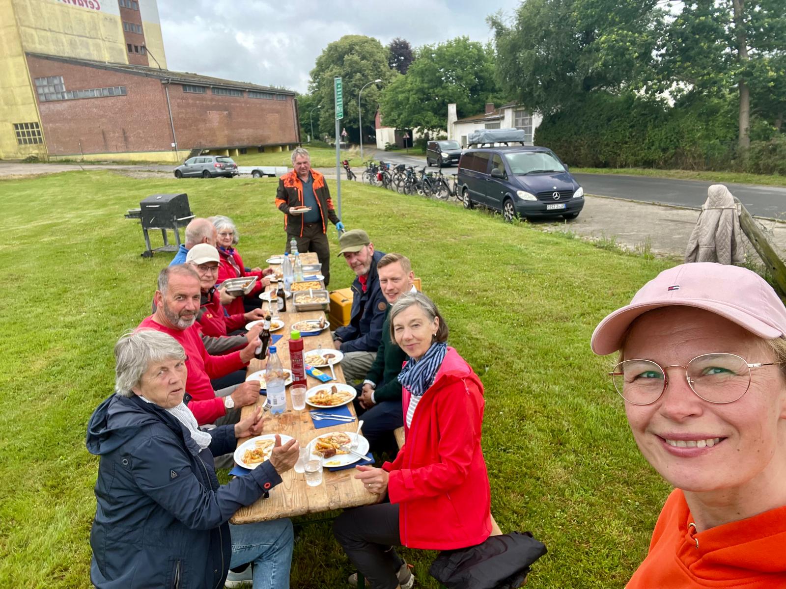 Die angemeldeten Teilnehmer zu unserer diesjährigen Fahrradtour trafen sich am 13. Juli 2025 am Pennyparkplatz und machten sich, wenn auch nicht bei optimalen Wetter, Richtung Satrup auf den Weg.