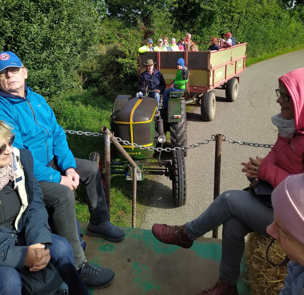 Wir starteten am 14. September 2025 mit zwei Treckern und etwa 30 Teilnehmern vom Jensens Obstcafé von Löstrup aus.
