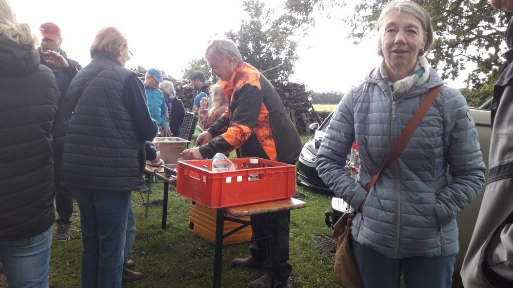 Hier überraschte uns ein heftiger Regenschauer. Wir danken Johannes für den Unterstand in seinem Carport, dort gab es eine Stärkung durch den mitgebrachten Imbiss.